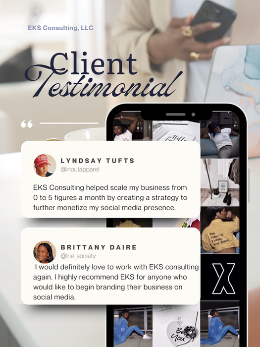 EKS Consulting helped scale my business from 0 to 5 figures a month by creating a strategy to further monetize my social media presence. Emoni’s passion for helping clients is unmatched. She and the team go above and beyond to ensure you feel supported. Highly recommend if you are a small business owner looking for a highly skilled consulting firm. Worth every penny!